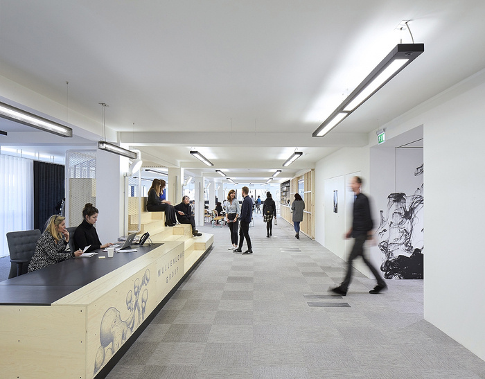 Studio Octopi has design the offices of the MullenLowe Group agencies located on the corner of City Road and Epworth Street in Shoreditch, east London.