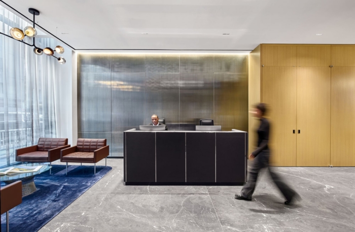 The Switzer Group’s Ramirez & Company offices in New York City masterfully blends hospitality and modern finance, showcasing organic materials and inviting spaces that foster collaboration within a refined environment.
