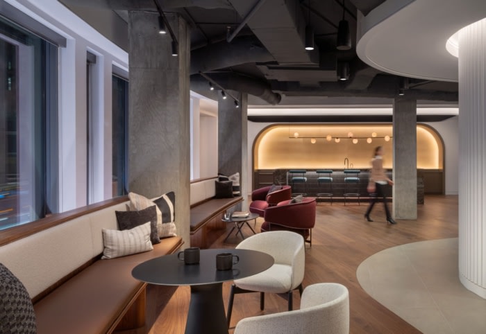 OTJ Architects revitalized the 1399 New York Avenue Spec Suite in Washington, DC, blending modern amenities and dynamic communal spaces to enhance tenant experiences and attract major corporate clients.