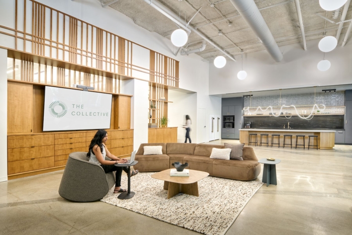 AP+I Design’s The Collective Showroom in San Jose reimagines workplace culture through an inspiring blend of hospitality, functionality, and design, fostering collaboration and creativity in a vibrant environment.