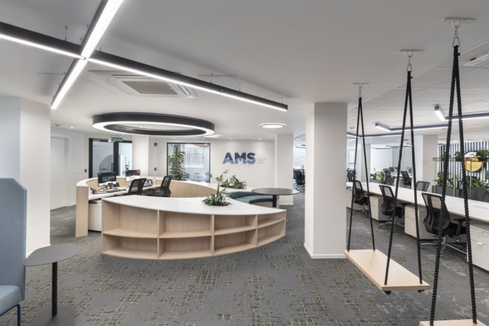Contract Workplaces revitalized the AMS offices in Montevideo, transforming a fragmented historic bank into a modern, collaborative workspace that reflects both the company’s identity and the spirit of its port-city heritage.