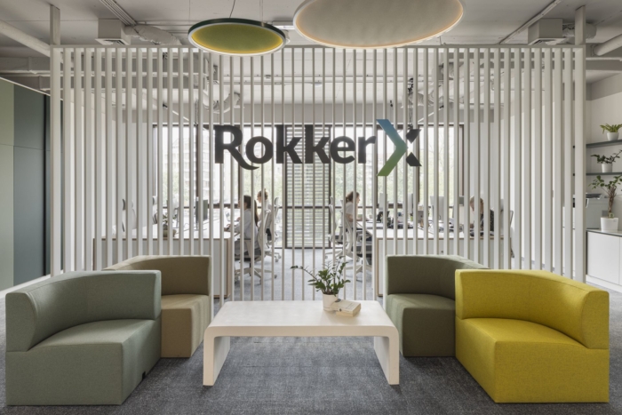 Atlas Project Management’s RokkerX offices in Sofia fuse dynamic workspaces with natural light and vibrant accents, reflecting the brand’s identity while fostering collaboration and innovation in a contemporary environment.