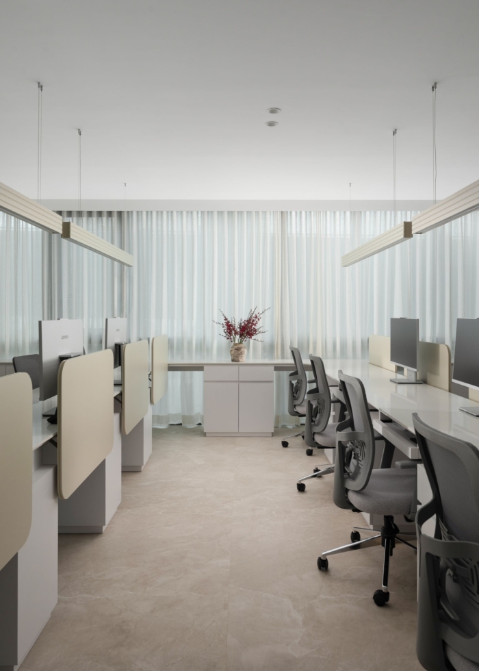 Neha Kachhara Interiors reimagined the Sanctum 405 Offices in Mumbai, creating a tranquil work environment with soft curves, elegant materials, and a seamless connection to nature.