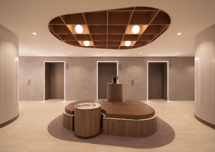 Archway’s 575 Bourke Street Spec Suite in Melbourne seamlessly blends flowing curves and refined materials, offering a versatile workspace that nurtures collaboration, comfort, and creative expression amid vibrant city views.