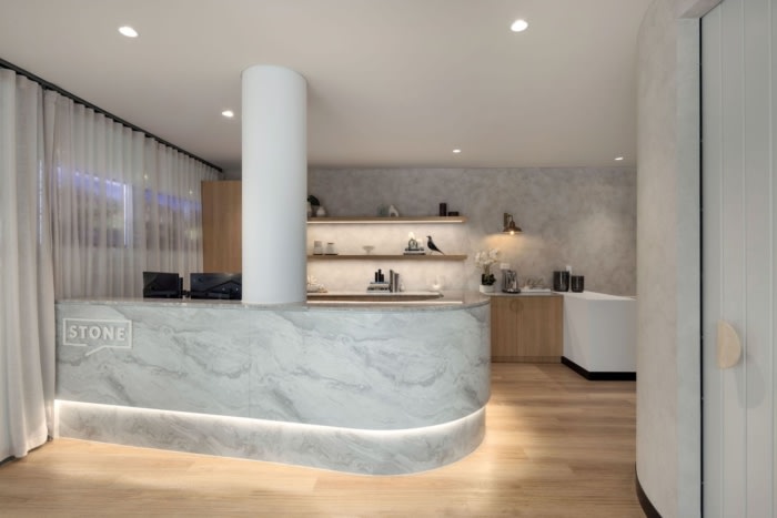 Cachet Group’s Stone Real Estate offices in Sydney masterfully blend sophistication and functionality, creating an inviting boutique workspace that enhances brand presence while fostering collaboration and adaptability.