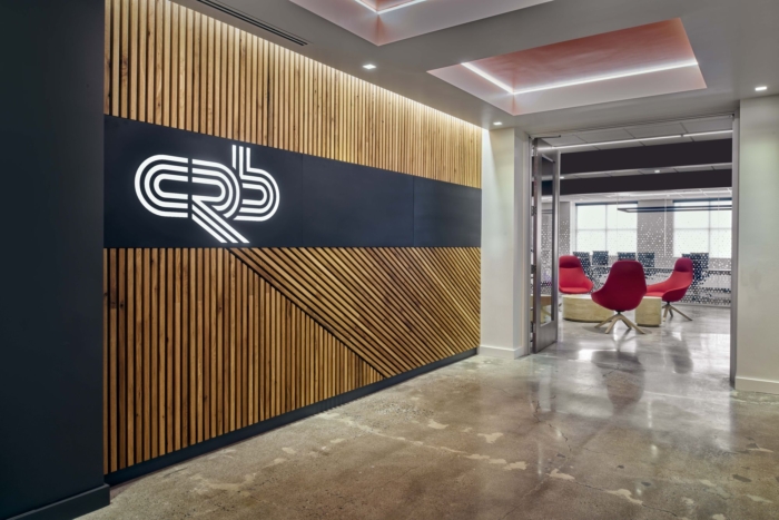 Banducci Associates Architects transformed the CRB offices in Emeryville into a cohesive, collaborative workspace, utilizing bold materials and modern finishes to reflect the tenant’s identity while maximizing stunning views.