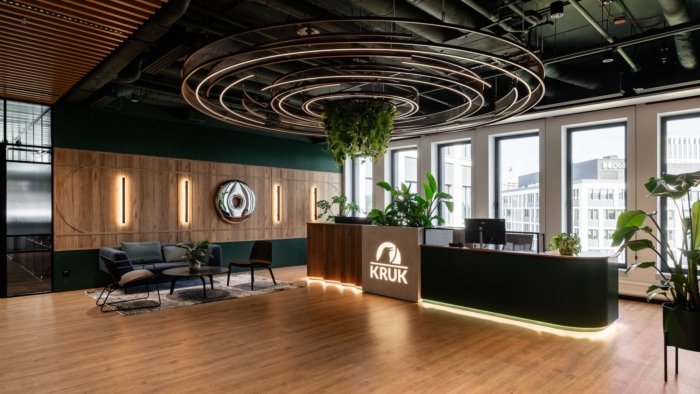 BIT CREATIVE Barnaba Grzelecki designed the KRUK offices in Wrocław, crafting an adaptable workspace that harmonizes natural elements with modern artistry, fostering creativity and well-being across its themed floors.