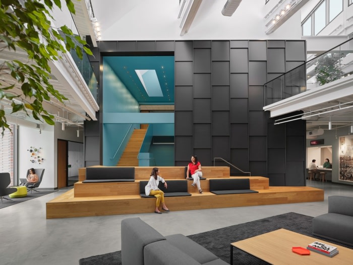 Bohlin Cywinski Jackson designed a philanthropic organization’s headquarters in Redwood City, as a flexible and vibrant workspace that fosters collaboration while highlighting wellness and creative interaction through thoughtful design.