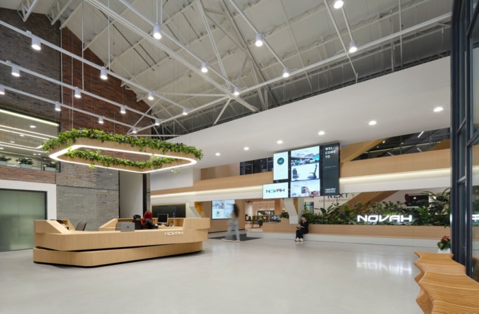 The NOVAH Shanghai Innovation Lab in Shanghai creatively integrates biophilic design with industrial heritage, transforming a former factory into a dynamic office space that fosters collaboration and sustainability.
