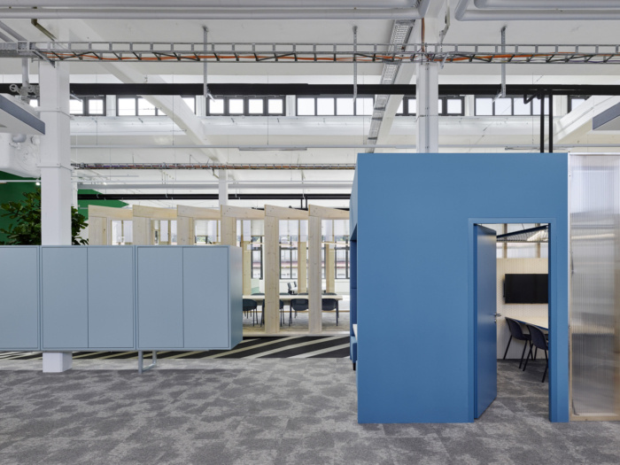 Save Robert Bosch Automotive Steering Offices - Schwäbisch Gmünd View Project Studio Alexander Fehre Zooey Braun Carpet, Column, Glass Walls on Meeting Room, Meeting Room - Square / Rectangle Table, Photo Outside Meeting Room, Small Meeting Room, Storage, Wall-Mounted Display, Wood