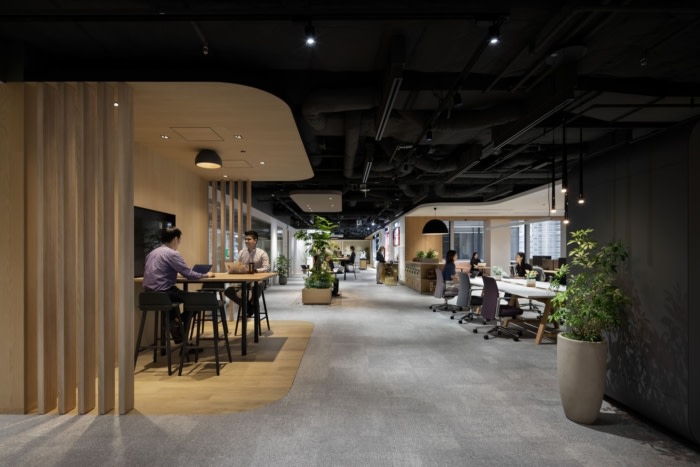 Save L’Oréal Offices - Tokyo View Project The Design Studio K.K. Nacasa & Partners Bar Stool, Exposed Duct, High Table, Pendant, Recessed Downlight, Small Open Meeting Space, Task Chair, Track / Directional, Wall-Mounted Display