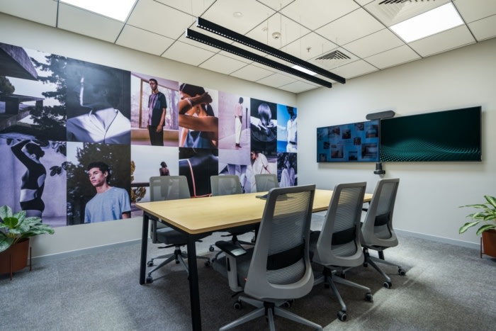 Save Confidential Multinational Fashion Brand Offices - Bengaluru View Project Zyeta Studios Shamanth Patil Backlight / Panel, Carpet, Drop Ceiling, Framed Wall Art, Large Meeting Room, Linear Pendant, Plants, Task Chair, Video Conferencing, Wall-Mounted Display