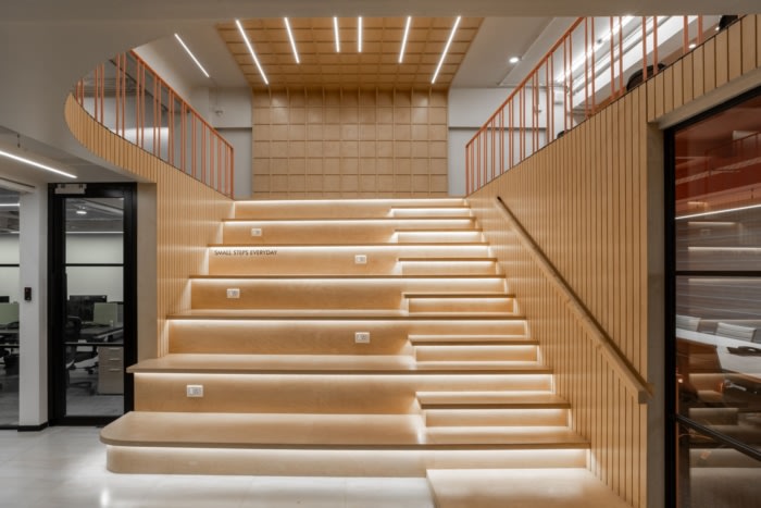 Save The Executive Zone Coworking Offices - Chennai View Project Aloka Design Studio Infinite Photography Atrium, Cement Floor, Glass Walls, Stairs, Tiered-Seating, Wood