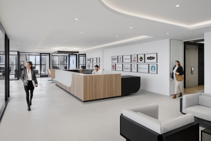 Save North Point Offices - San Francisco View Project Borum Design + Build Garry Belinsky Framed Wall Art, Glass Walls, People, Reception / Waiting Area, Stone Tile, Wood