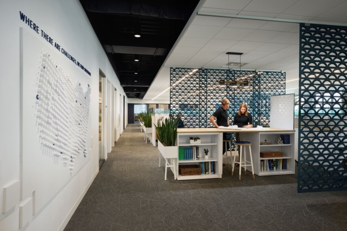 Save Burgess & Niple Offices - Columbus View Project MA Design Cory Klein Bar Stool, Branding, Carpet, Counter, Drop Ceiling, Exposed Duct, Meeting Point, Open Office, People, Plants, Wall Graphics, Whiteboard