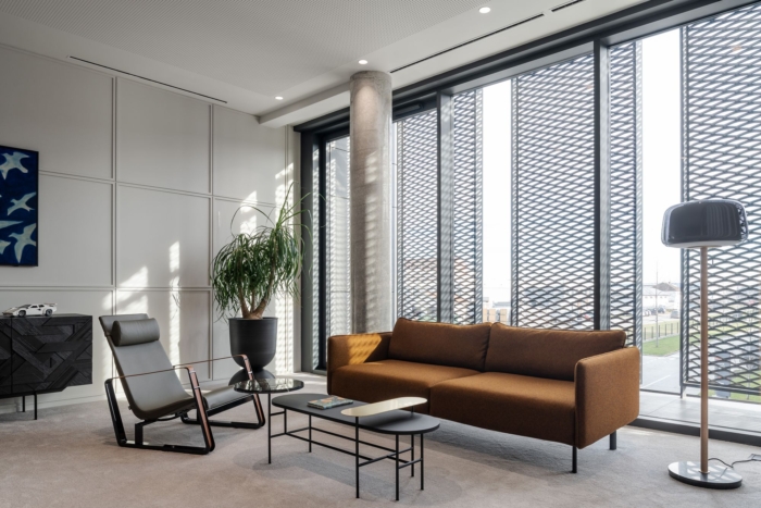 Save Drina Plastika Offices - Belgrade View Project ZABRISKIE Miloš Martinović Carpet, Cement, Coffee Table, Column, Lounge Chair, Plants, Sofas / Modular Lounge