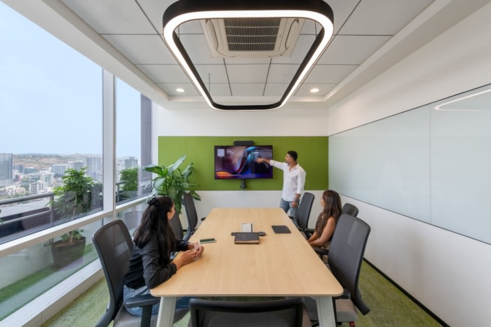 Save HNI Global Business Service Center (GBSC) - Pune View Project Space Matrix Carpet, Drop Ceiling, People, Plants, Small Meeting Room, Task Chair, Video Conferencing, Whiteboard