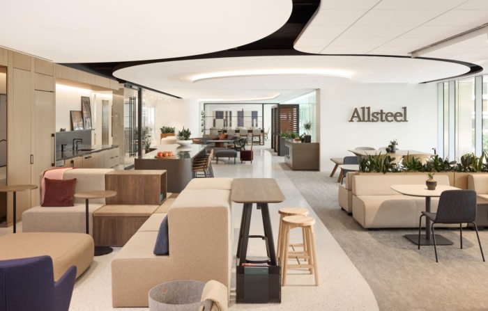 Save Allsteel Design Lab - Washington DC View Project Gensler Bar Stool, Branding, Carpet, Chair, Drop Ceiling, Glass Walls, High Table, Lounge Chair, Personal / Laptop Table, Plants, Sofas / Modular Lounge