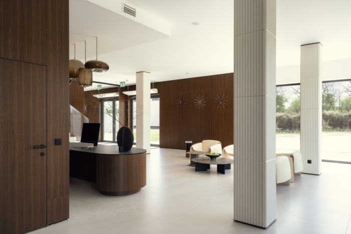 Save Estetyczna Grupa Offices - Warsaw View Project Art’Up Interiors Coffee Table, Column, Lounge Chair, Occasional Table, Reception / Waiting Area, Wood