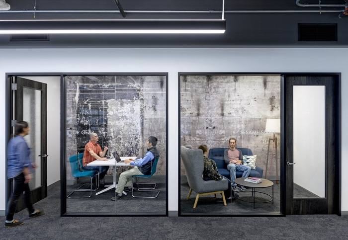 Save Comcast's Silicon Valley Innovation Center - Sunnyvale View Project Blitz Jasper Sanidad Breakout Space, Coffee Table, Floor Lamp, Glass Walls, Glass Walls on Meeting Room, Linear Pendant, Meeting Room - Square / Rectangle Table, Meeting Room – Round / Oval Table, Occasional Table, People, Photo Outside Meeting Room, Small Meeting Room