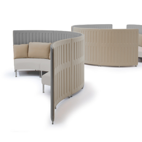 Some work is facilitated by isolated space for individual concentration. Other work is better suited for a more open, collaborative setting. Muffle enhances both individual and group work by providing a discrete space with visual boundaries and acoustic management, supplemented with integrated tech support. By reducing excess sensory stimulation, Muffle mitigates distractions and curbs stress, while the cushioned surface and soft fabric create a warm, yet relaxed focus. The multitude of color and layout options allows for diverse spaces that meet the needs of a variety of workers.