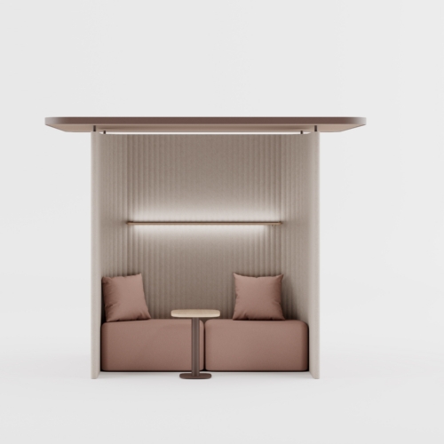 Its flexible structure creates distinct areas within the office, providing spaces where people can isolate themselves from the general surroundings to meet or work without the need for closed doors.